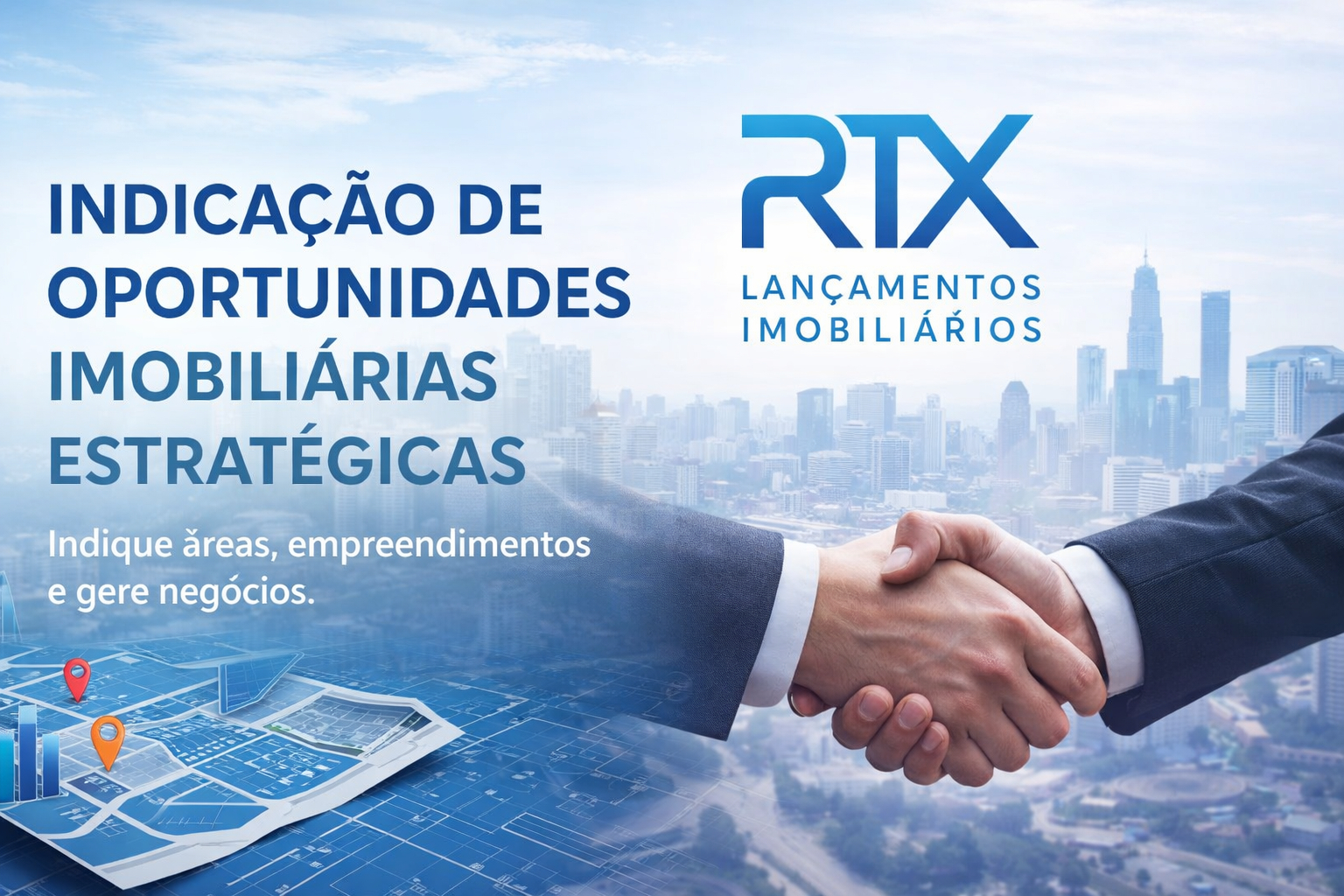 A RTX atua como um hub estratégico, conectando áreas, empreendimentos e negócios imobiliários a loteadores, incorporadoras e investidores ativos.